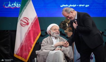 خوش و بش صمیمانه قرائتی و پزشکیان در اجلاس سراسری نماز +عکس