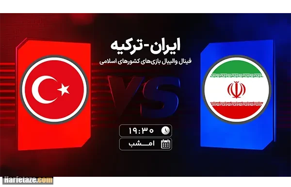 فرکانس و شبکه های پخش زنده و آنلاین والیبال ایران و ترکیه امروز پنجشنبه ۲۲ آبان ۱۴۰۴ بازی‎های کشورهای اسلامی برگزار می‌شود. علاقه‎مندان به والیبال می توانید پخش زنده و آنلاین در لینک های زیر بطور زنده و بدون سانسور و با کیفیت عالی تماشا کنید